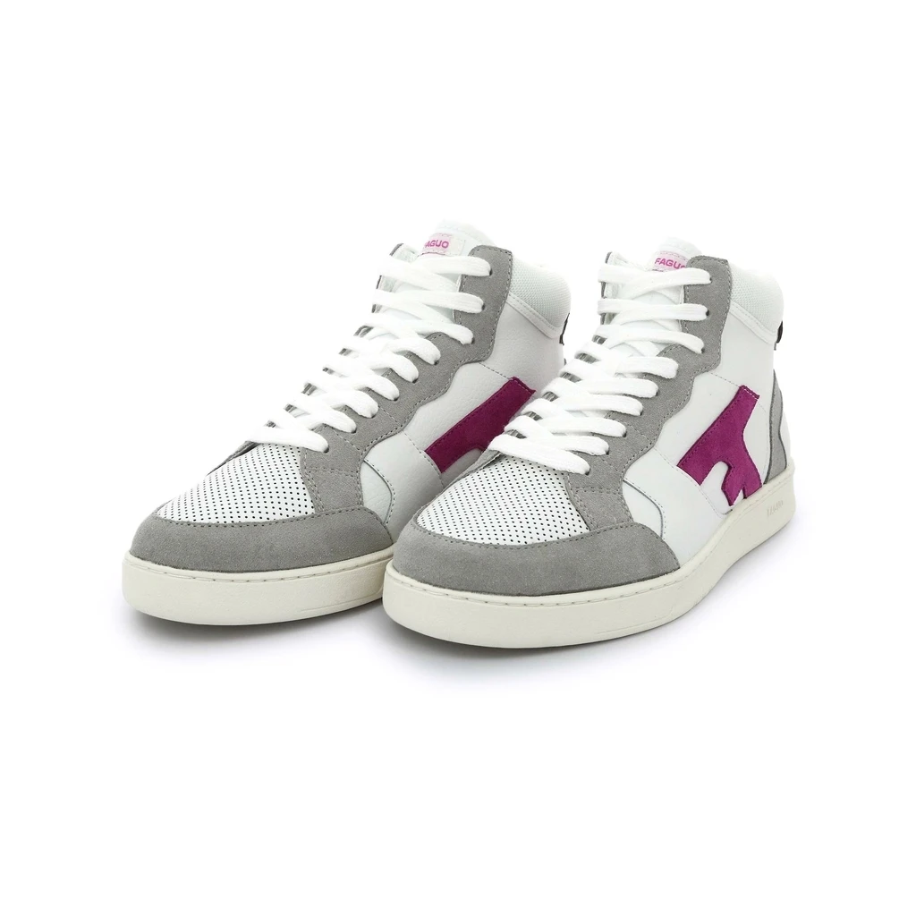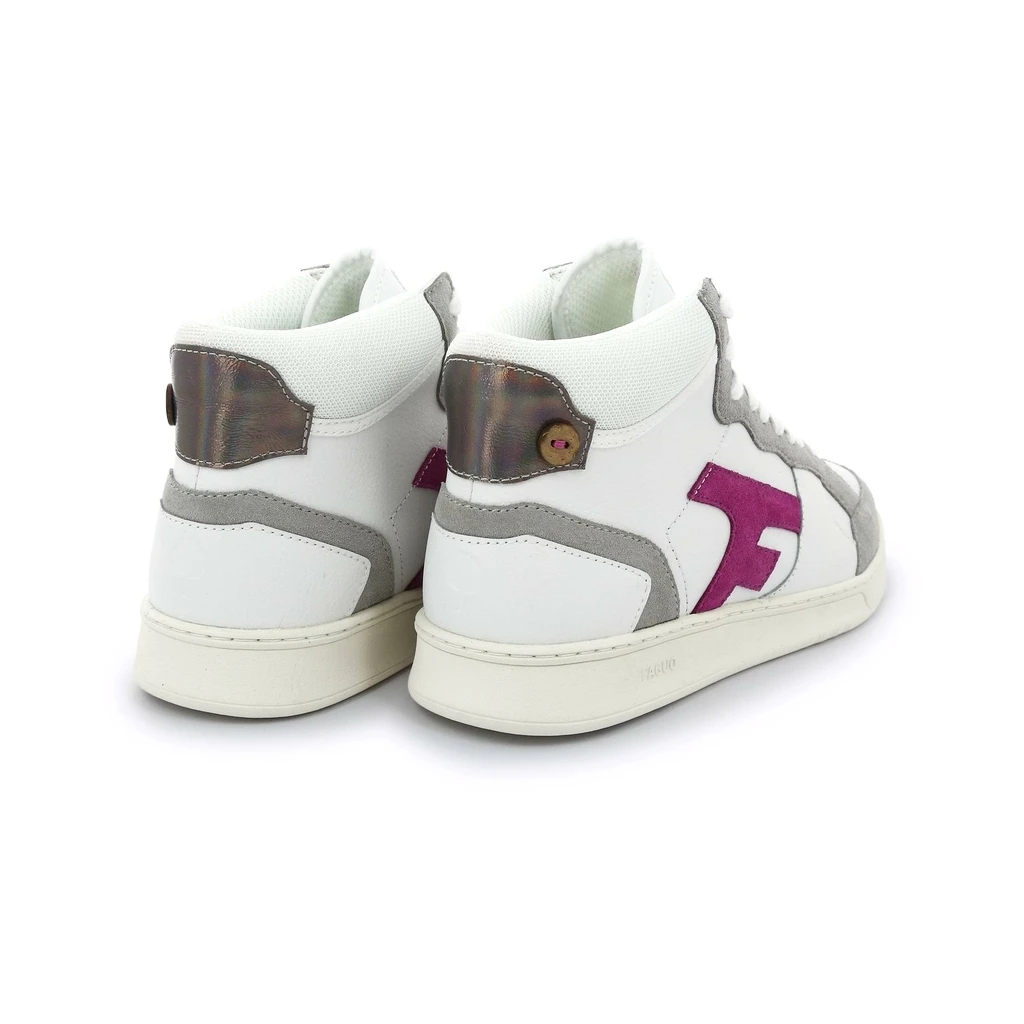 La Hazelhi est une tennis moderne à l’allure sportive. Ses multiples empiècements mixent le cuir, le coton et le polyester pour donner du caractère à la chaussure. La semelle blanche travaillée est en caoutchouc dont une part est recyclé. Vous pouvez retrouver la signature Faguo : le logo « F » contrastant sur la tige et le célèbre bouton coco à l’arrière.