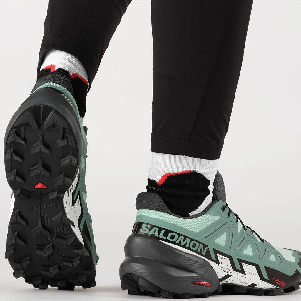 Le talon de la Speedcross 6 forme une véritable enveloppe pour une attaque précise du pied et une stabilité irréprochable tout au long de la foulée.