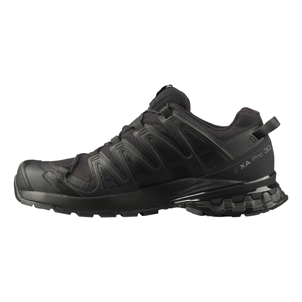 La chaussure Xa Pro 3D V8 Gore-Tex est équipée d’une semelle Contagrip, qui assure une excellente accroche. Son système de 3D Chassis garantit un bon équilibre entre stabilité et amorti.
