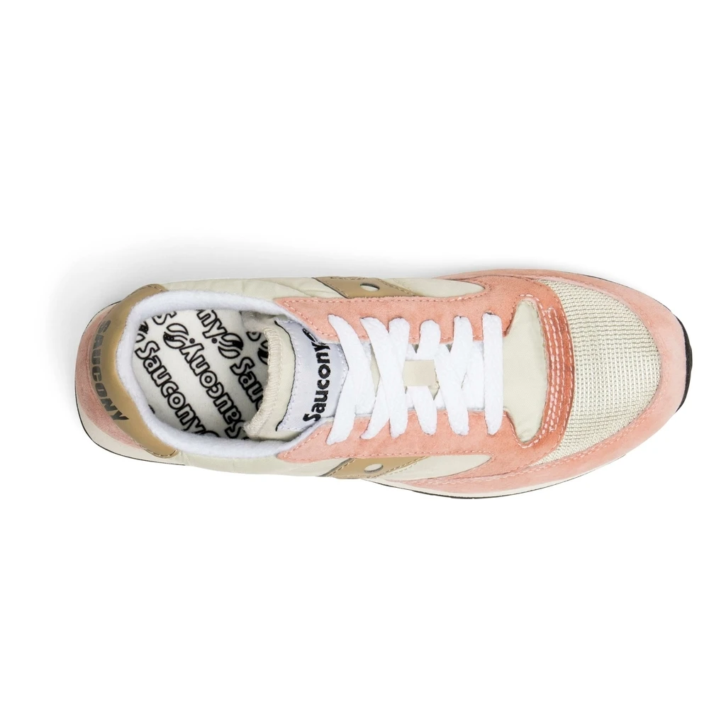 Depuis 1981, année de son apparition, la chaussure Jazz O Vintage a toujours bénéficié de critiques élogieuses. Ici déclinées en coloris rose et blanc, ces sneakers pour femmes sont stylées et confortables.